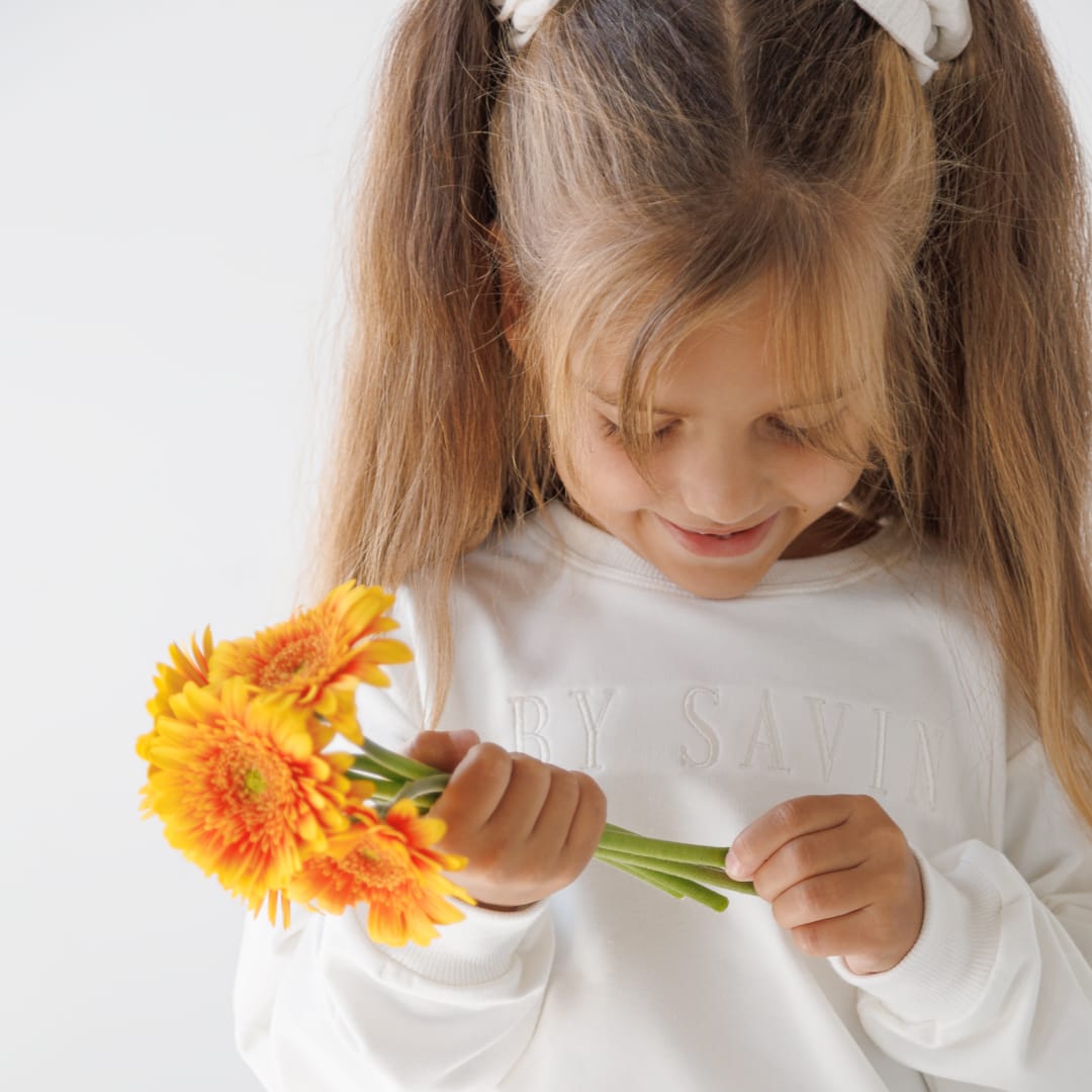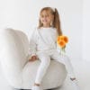 Komplet składający się z luźnej bluzy (dzianina dresowa) i leginsów (dzianina prążkowa). Obie dzianiny produkcji polskiej posiadające certyfikat OEKO-TEX 100. Dzianina dresowa (94% bawełna, 6% elastan) jest ciepła, miękka i oddychająca. Leginsy prążkowe (95% bawełna, 5% elastan) są ciepłe, miękkie i rozciągliwe.