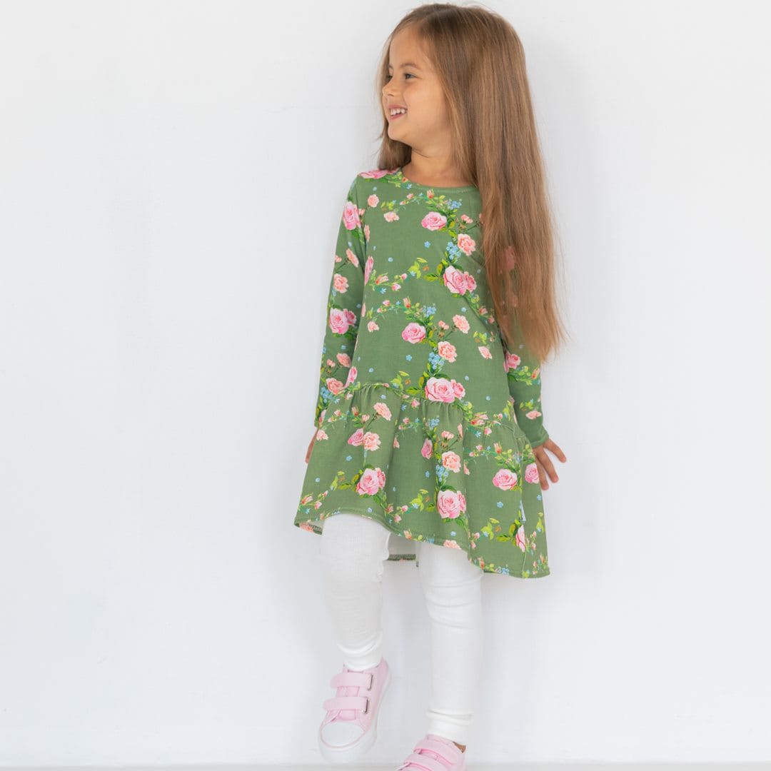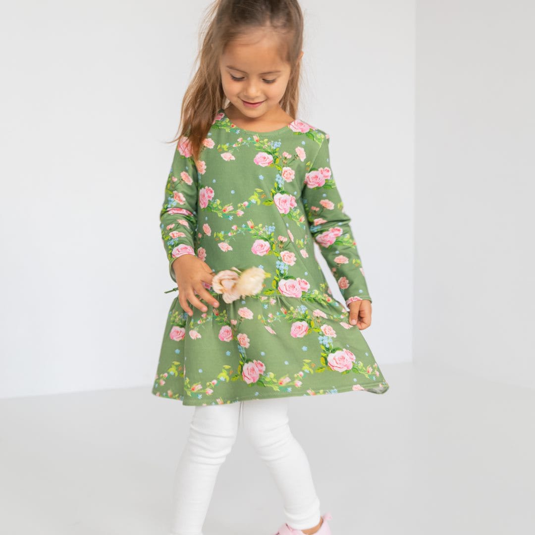 Sukienka wykonana z muślinu bawełnianego. Tkanina posiada certyfikat OEKO-TEX 100. Print na tkaninie jest nasz autorski, dostępny tylko u nas. Tkanina jest lekka, zwiewna, oddychająca i nie wymaga prasowania.