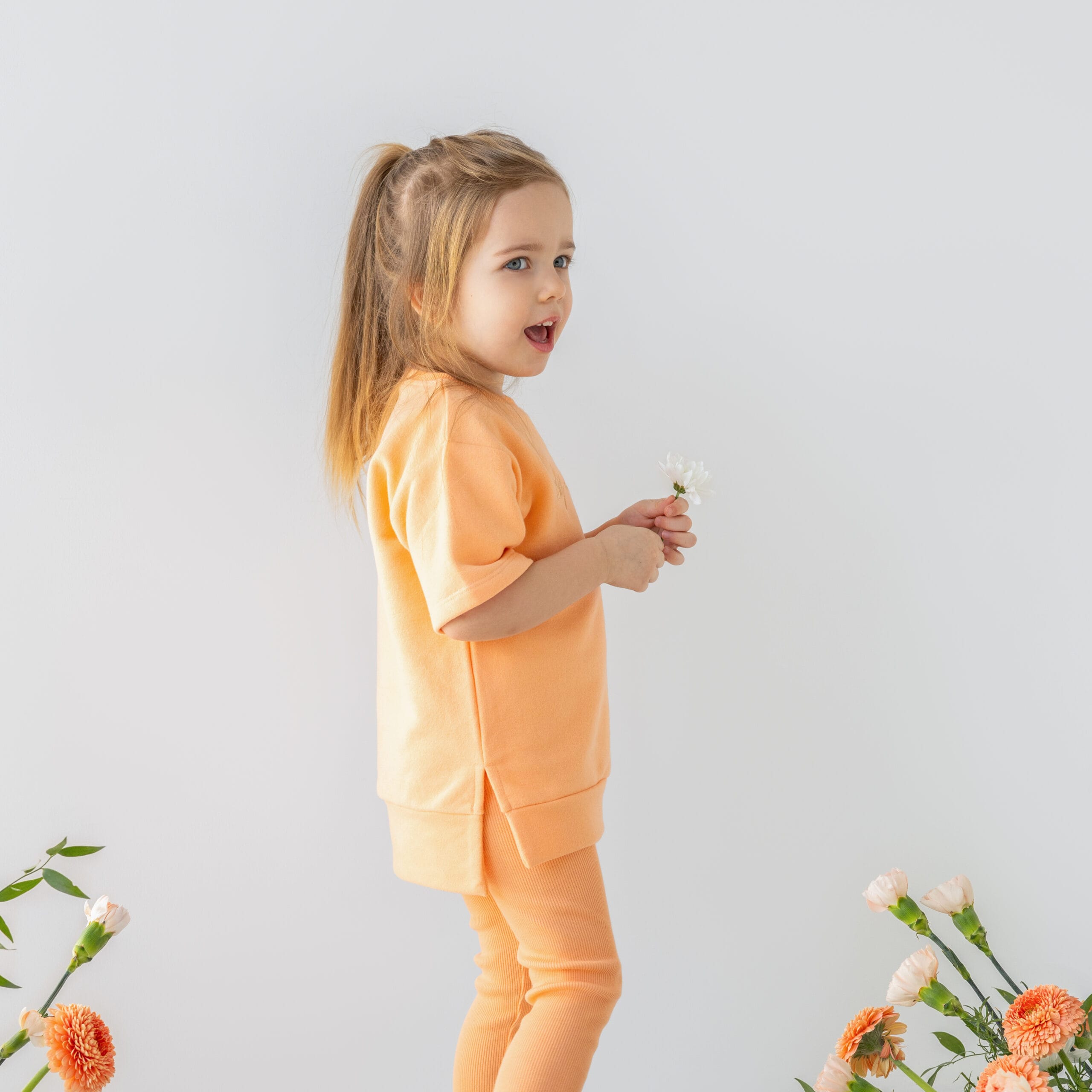 Komplet składający się z luźnej bluzy i leginsów. Bluza dresowa (90% bawełna, 10% poliester) oraz leginsy prążkowe (95% bawełna, 5% elastan) szyte z dzianin certyfikowanych (OEKO-TEX 100). Dzianiny produkowane w Polsce. Komplet idealny na chłodne wiosenno-letnie wieczory.